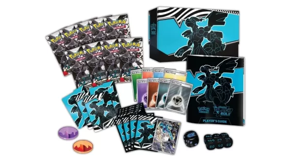 Escarlata y Púrpura: Estuche de Entrenador Élite de Ráfaga Negra o Resplandor Blanco, que incluye nueve sobres de refuerzo, una carta promocional de ilustración rara protagonizada por Thundurus o Tornadus, más accesorios de juegoColección de Carpeta, incluyendo cinco sobres de refuerzo y una carpeta de nueve bolsillos que exhibe a Zekrom o ReshiramColección de Póster de Teselia, con dos sobres de refuerzo por expansión, cartas promocionales de Snivy/Tepig/Oshawott, y un póster de doble caraLata Mini de Teselia, que contiene un sobre de refuerzo por set, más arte coleccionable y cartas adhesivas