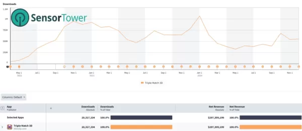 它甚至可能开创了新细分流派——根据SensorTower数据,自2022年4月上线以来,iOS和安卓双端下载量已突破2000万次。该作还催生了模仿者,例如Peak公司在18个月后推出的《Match Factory》。
